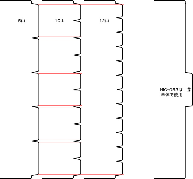また、5山と12山一緒に使用する際は、5山と12山の上部と下部がそろっています。
