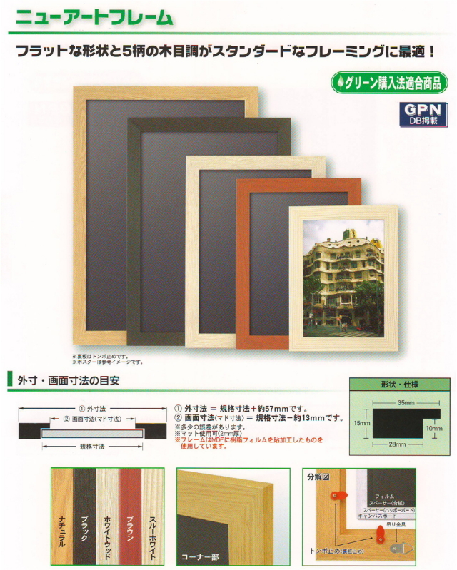 フレームの色別品番 ナチュラル:NT ブラック:BK ホワイトウッド:WW ブラウン:BR スルーホワイト:TW